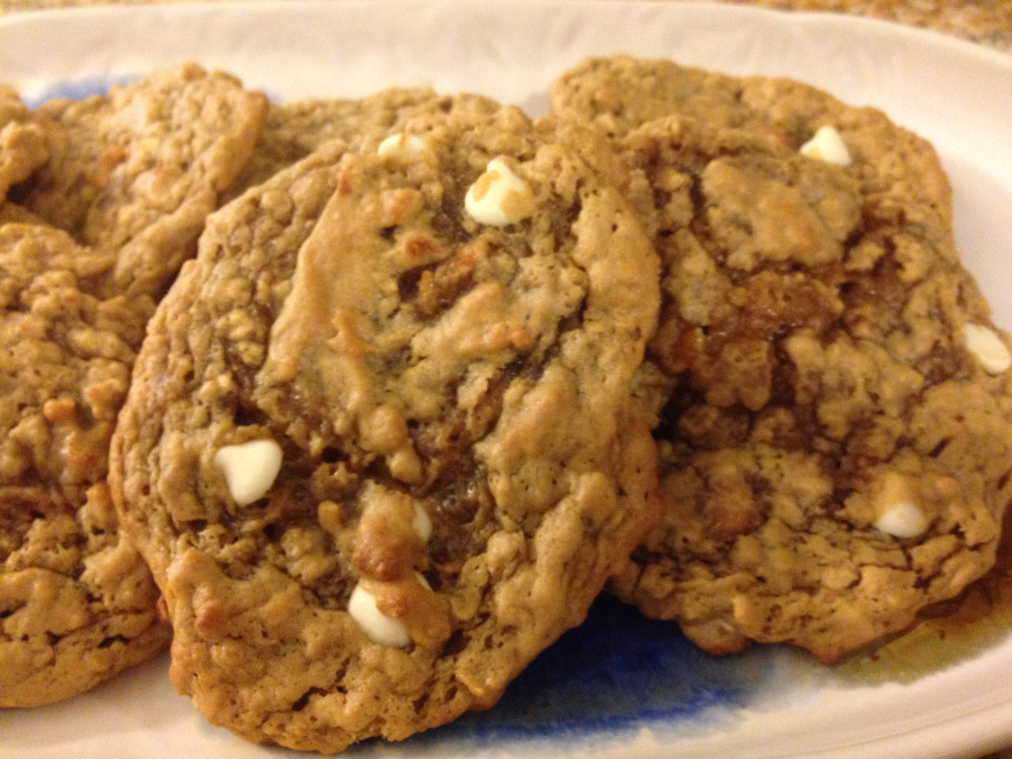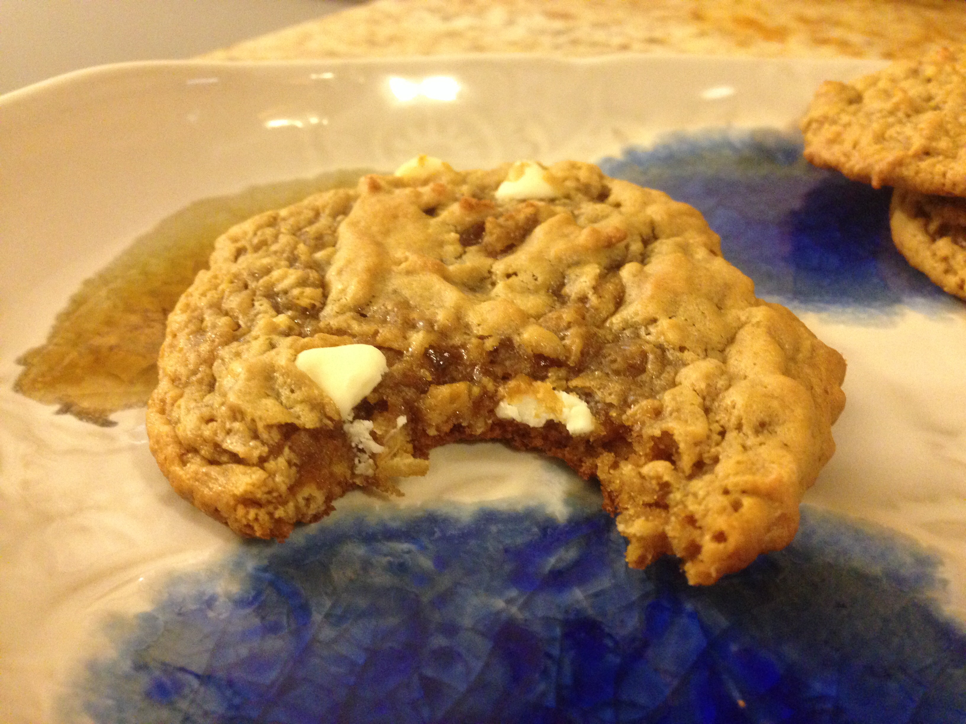 I made two kinds: plain oatmeal peanut butter, and some with white chocolate chips. I tested both for research purposes of course.