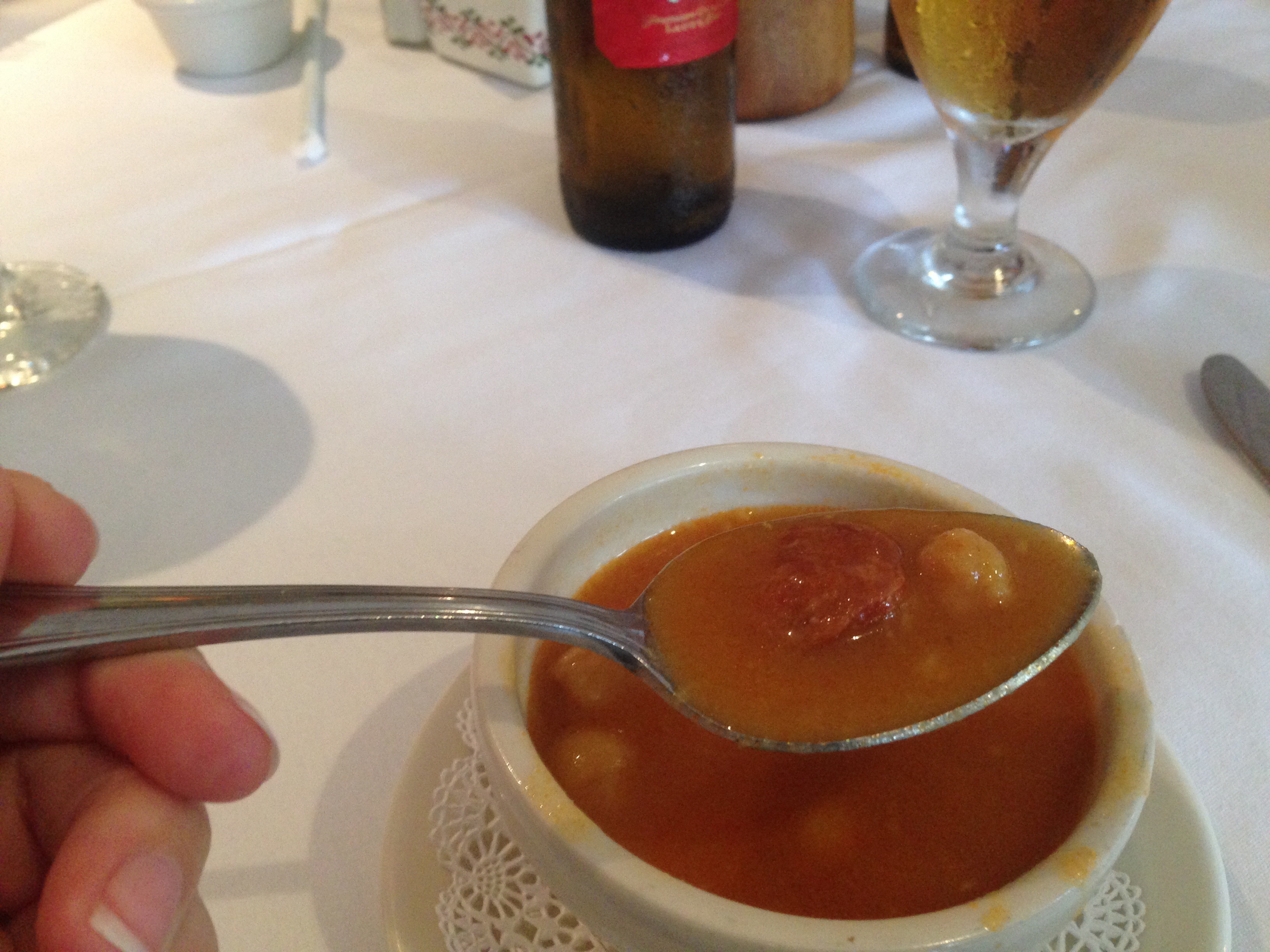 The Spanish Bean Soup has garbanzo beans, chorizo, onions, and a yummy broth.