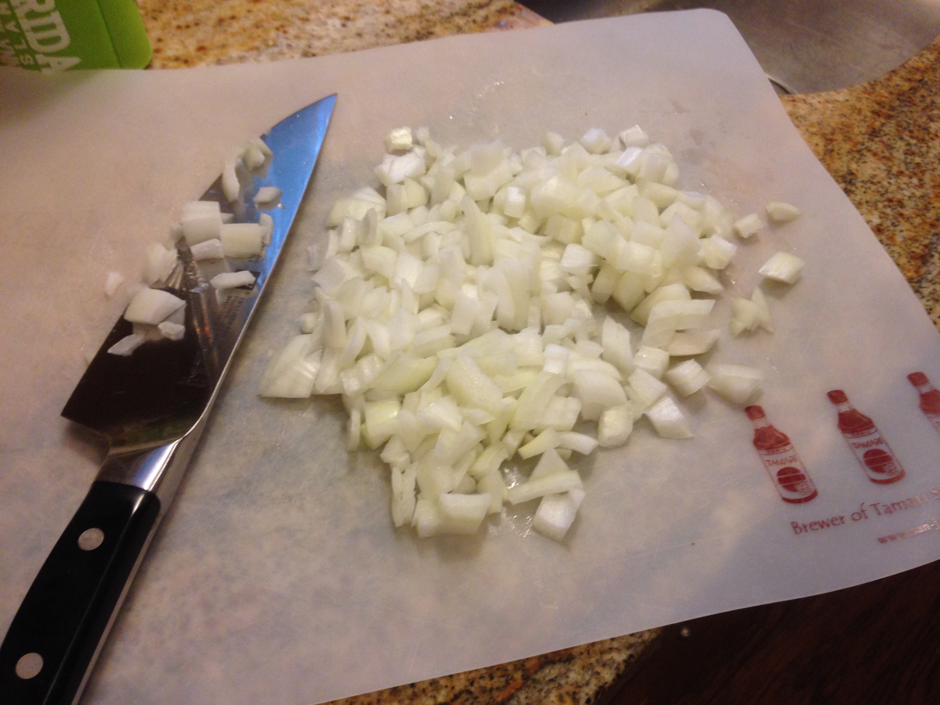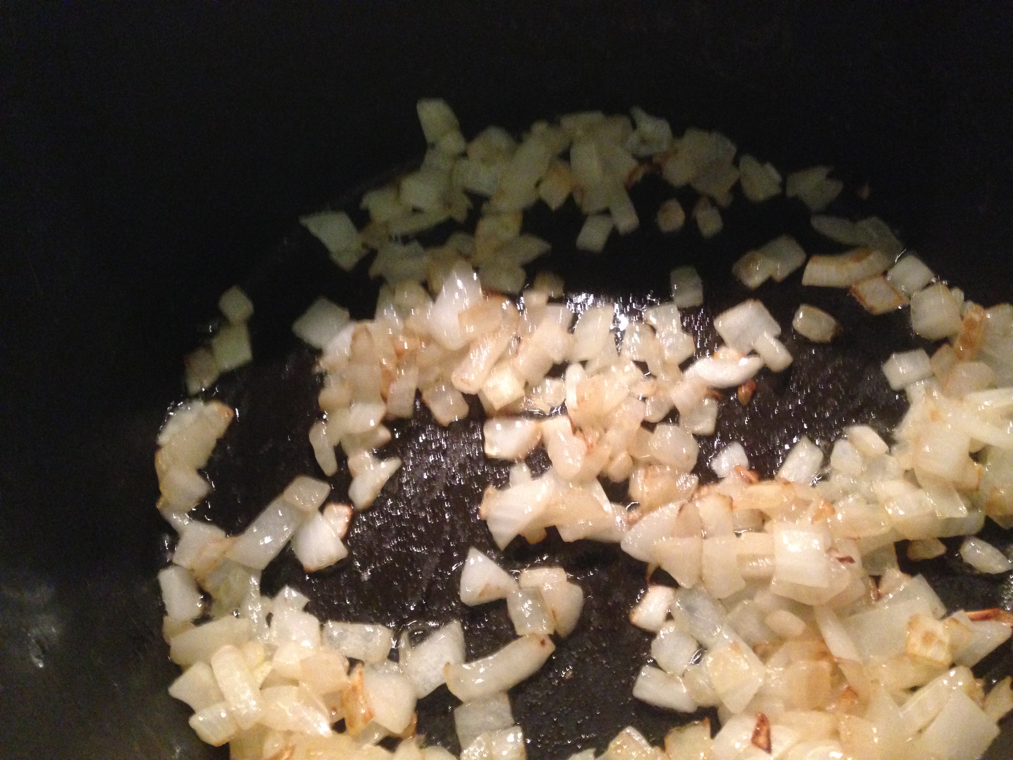 To start your sauce, finely dice half a sweet onion (like a vidalia), and saute it in two tablespoons of butter until slightly caramelized.