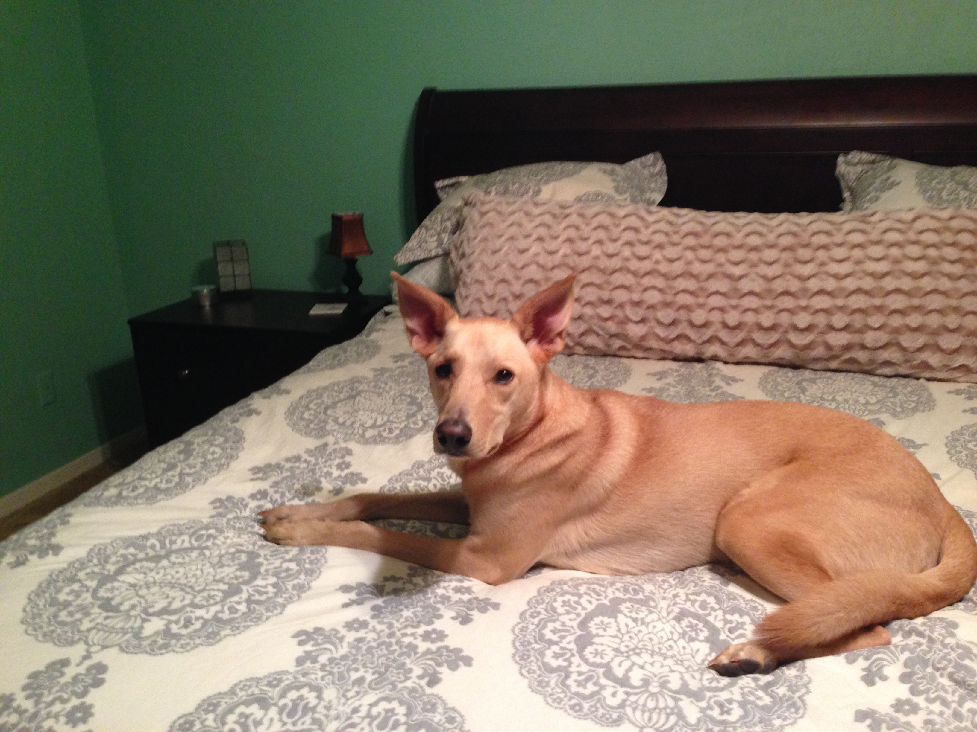 Peanut was such a big helper (heavy sarcasm). Do your dogs like to jump on the bed as your are trying to make it? What is that?
