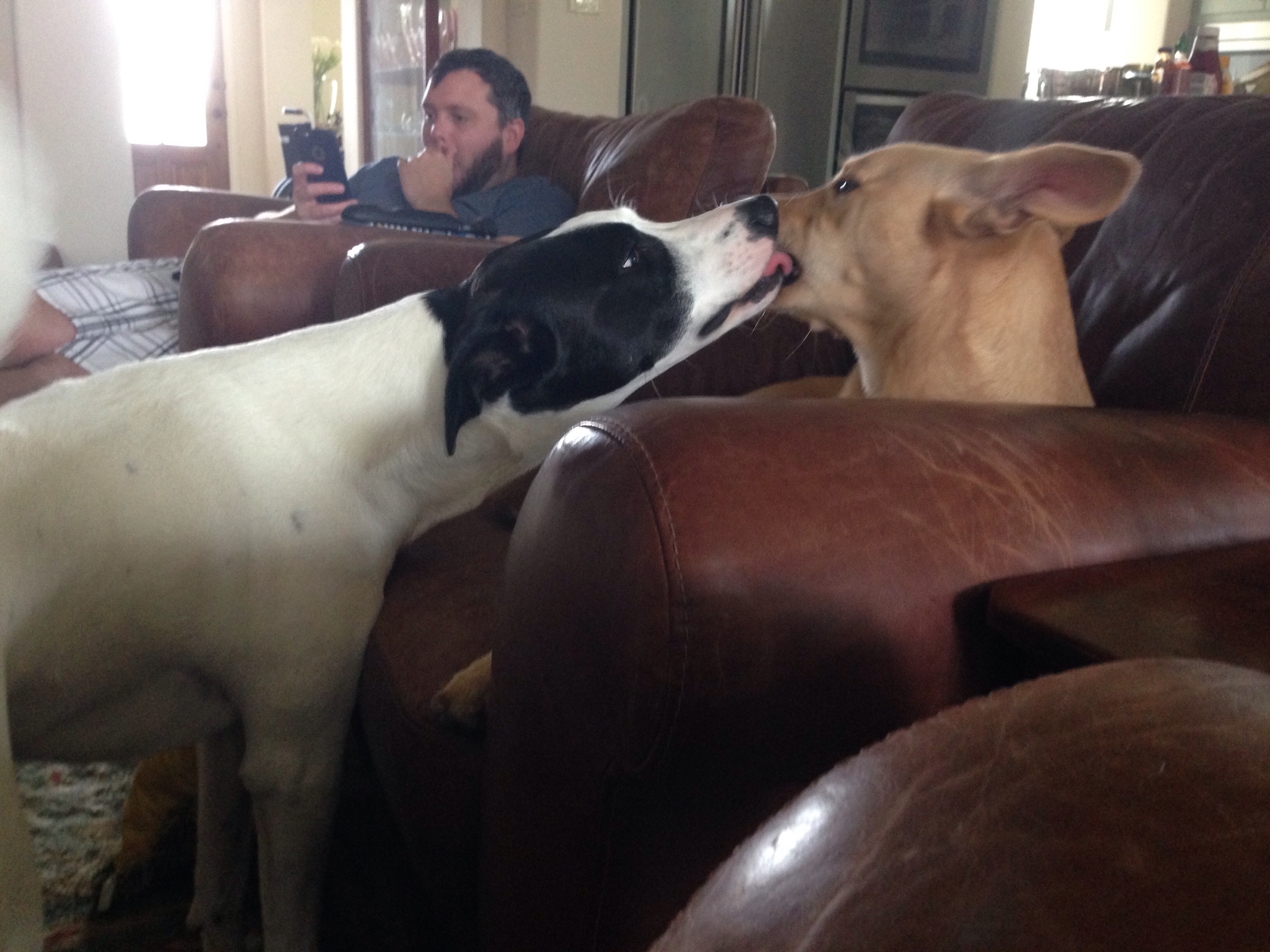 The best part about visiting my parents is the dogs get to play and tire each other out! The will play like crazy, then be all sweet to each other. It’s pretty funny.