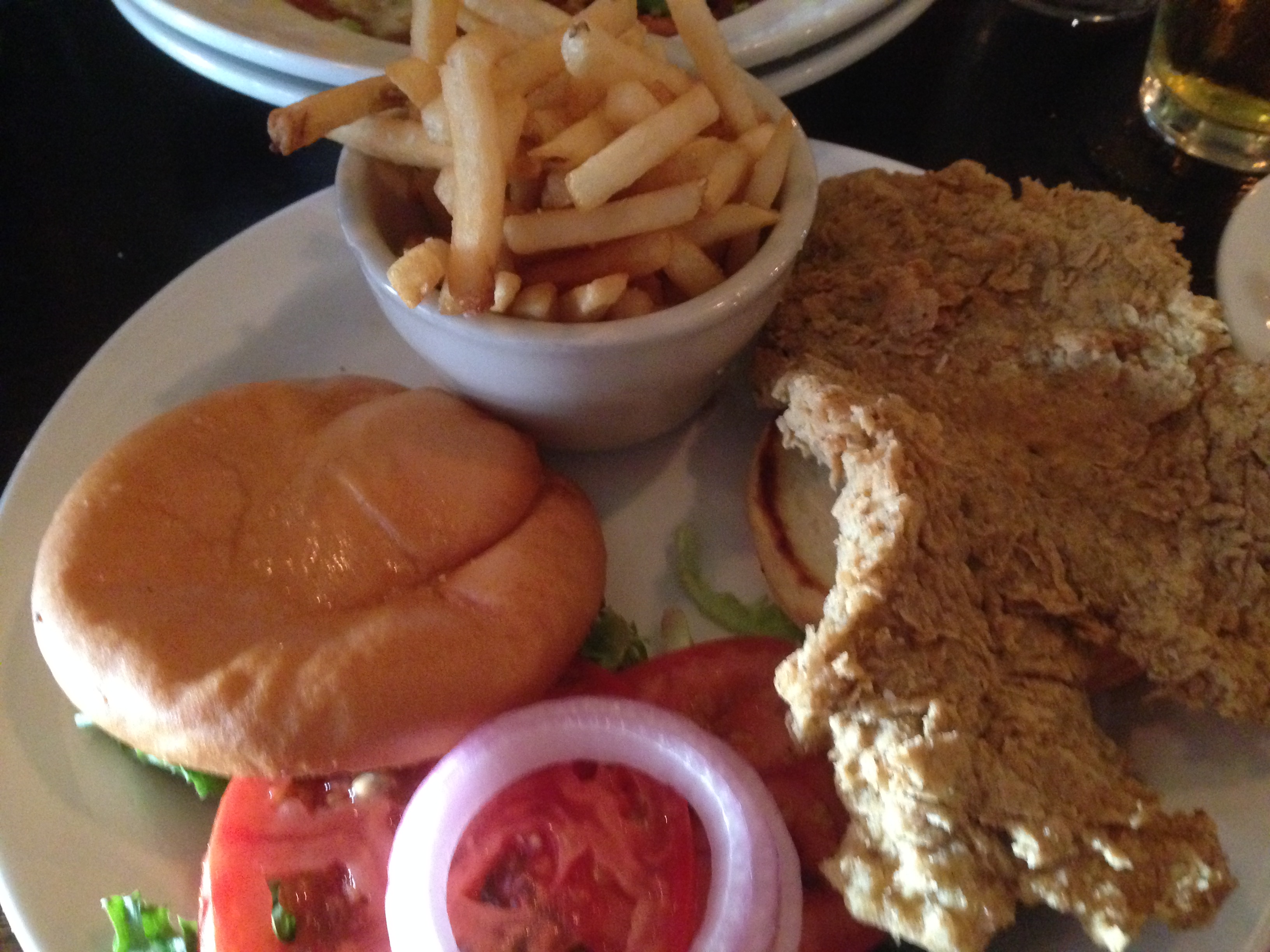 But of course, I didn’t. For my meal I ordered the Chicken Sandy. It’s a gluten free fried chicken breast, served with lettuce, tomato, red onion, and a avocado ranch on a Local Oven gf bun. The breading on the chicken has a bit of saffron in it. Definitely makes it unique.